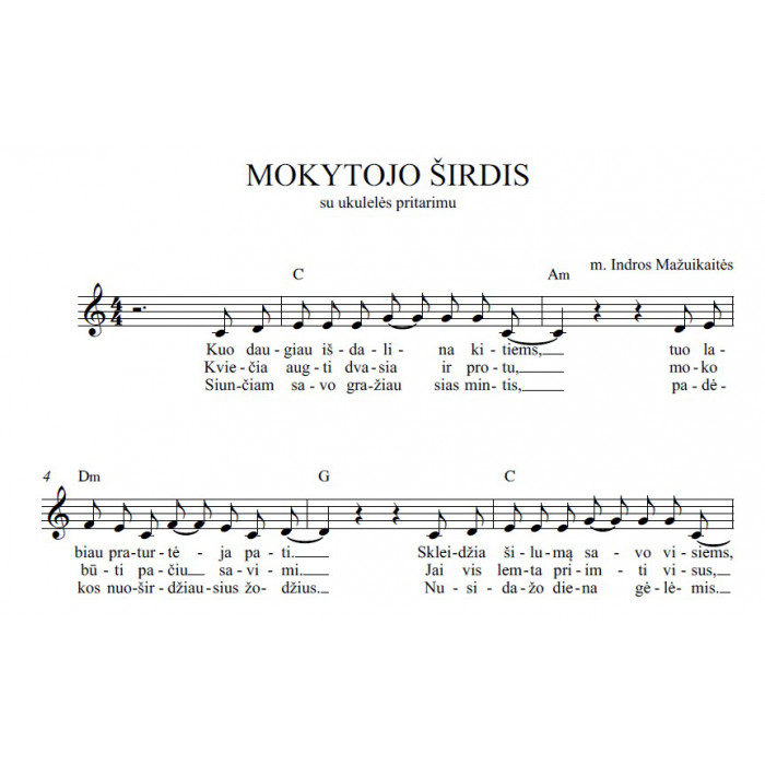 Nuoširdumas, skirtas Mokytojo dienos proga. Su ukulelės pritarimu. Panaudoti akordai: C, Am, Dm, F, G